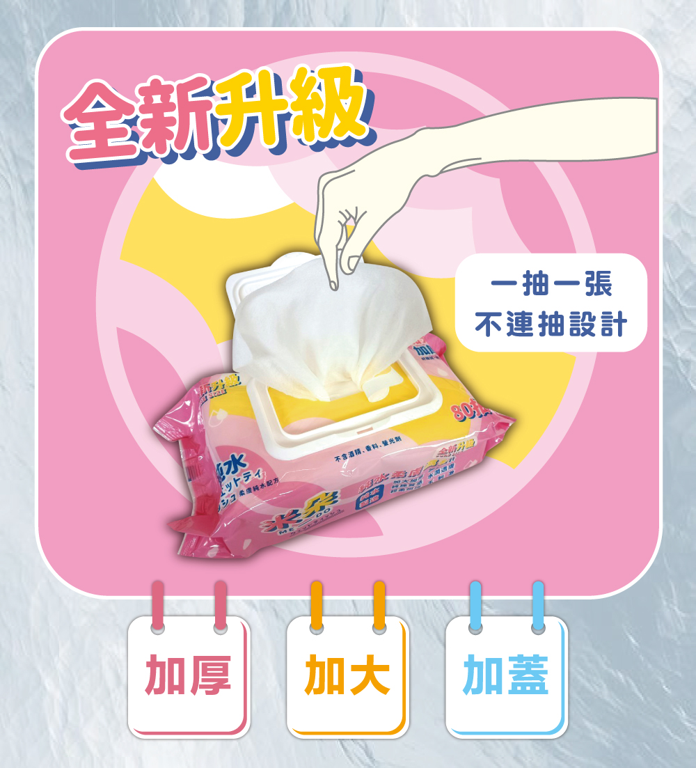 品名:米朵純水柔濕巾-80抽 加蓋加厚加大